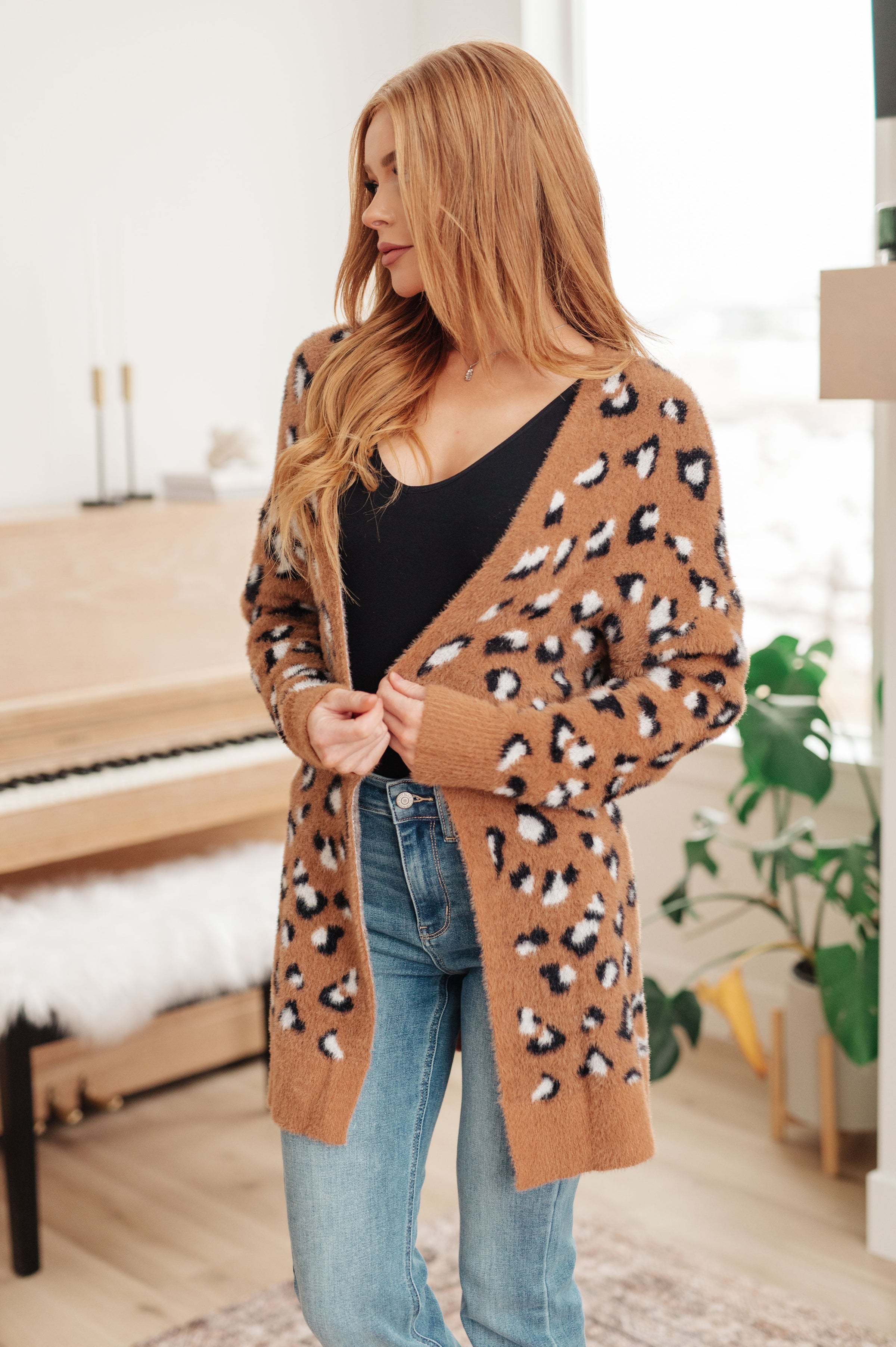 Be wild! Step out of the ordinary in this Animal Instinct Longline Cardigan. Crafted from a soft and cozy eyelash sweater knit, it features an open front and a longline silhouette accented with an eye-catching animal print. Get ready to roar into the season!